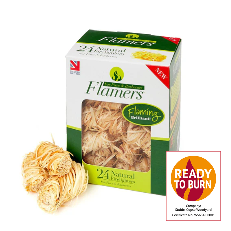 One Flamer per fire. Flamers natural firelighters light quickly and easily, even when wet, ensuring a hassle-free start to your fire every time. Made from natural wood wool and fully refined, up-cycled paraffin wax, Flamers are a natural and eco-friendly alternative to chemical firelighters.